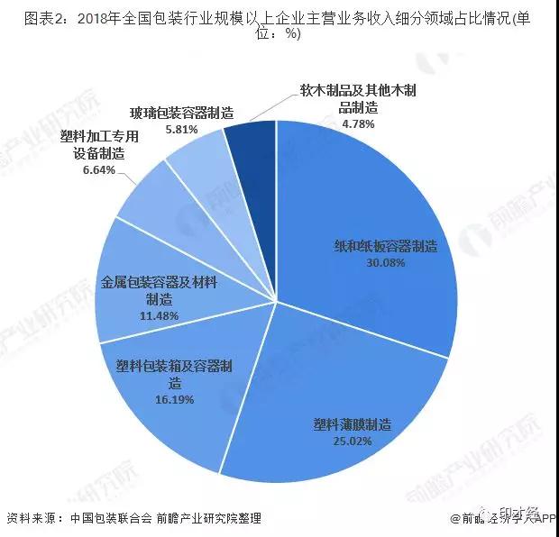 2019年我國紙包裝行業(yè)發(fā)展及市場供給現(xiàn)狀分析,紙包裝為包裝業(yè)最大細(xì)分市場。我國包裝行業(yè)的產(chǎn)品主要包括紙包裝、塑料包裝、金屬包裝、玻璃包裝、包裝機(jī)械。其中,紙包裝是包裝行業(yè)最重要的組成部分,在食品、藥品、家用電器、文化用品等領(lǐng)域廣泛應(yīng)用。2018年,紙和紙板容器制造業(yè)規(guī)模以上企業(yè)實(shí)現(xiàn)主營業(yè)務(wù)收入2919.05億元,占整個(gè)包裝產(chǎn)業(yè)規(guī)模以上企業(yè)主營業(yè)務(wù)收入的30.08%,在所有細(xì)分領(lǐng)域中占比最高。