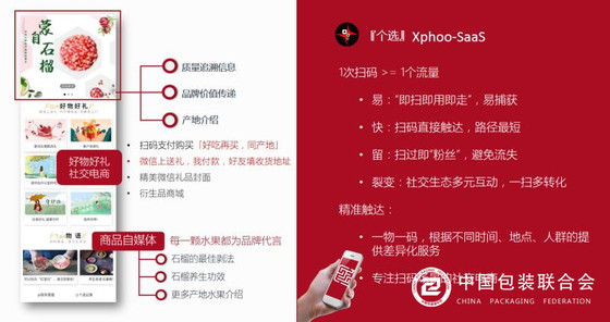 在包裝行業(yè),“物”就是每一件商品的外包裝,物聯(lián)網(wǎng)(亦可稱之為:泛物聯(lián)網(wǎng))的入口就是每一件外包裝上的二維碼。物聯(lián)網(wǎng)電子商務(wù)就是通過商品外包裝上的二維碼,一碼整合商品的生產(chǎn)管控、溯源、倉儲(chǔ)與物流管理、渠道管理、SCRM管理最終到消費(fèi)者售后服務(wù)、支付購買與線上分享。